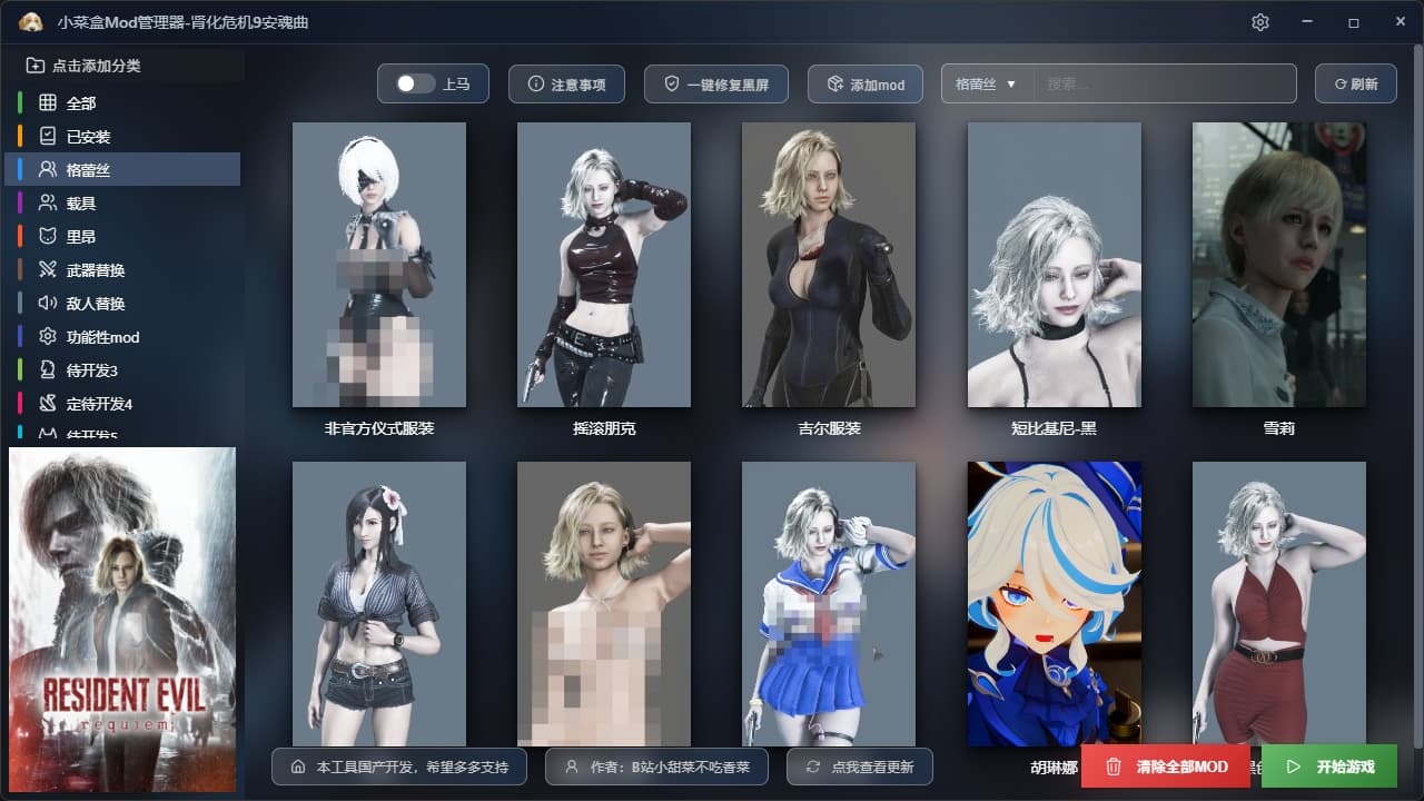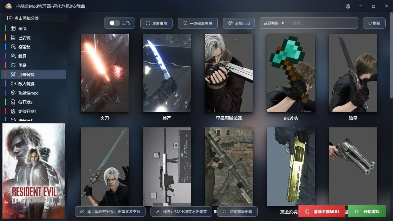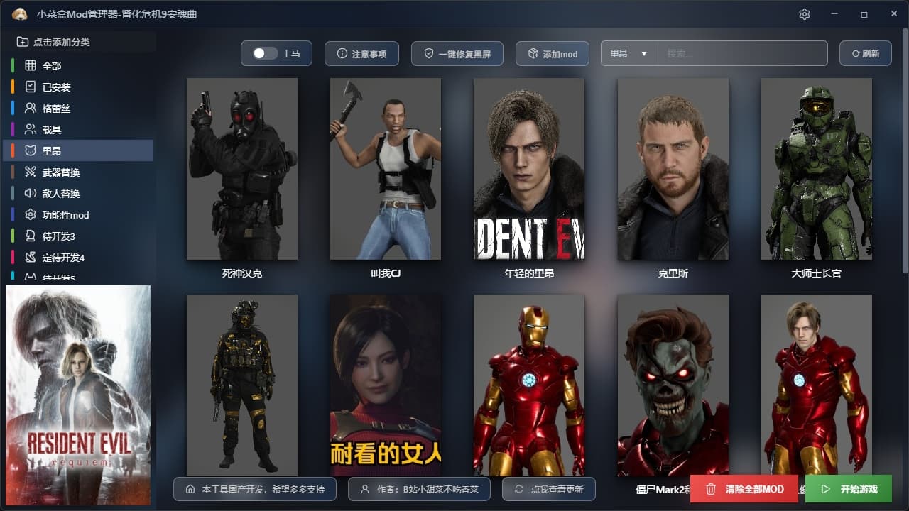 更新日志详细内容点我查看2026年3月29日更新:适配游戏更新的最新版本,修复了里昂游玩主线和更多敌人mod的问题,现在可以正常使用了,软件随便也优化了下使用更加流畅了,加了些小动画~请大家到原链接下载最新版本使用👆视频详情👆